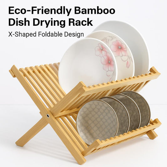 • Eco-Friendly Bamboo Dish Drying Rack - X-Shaped Foldable Design