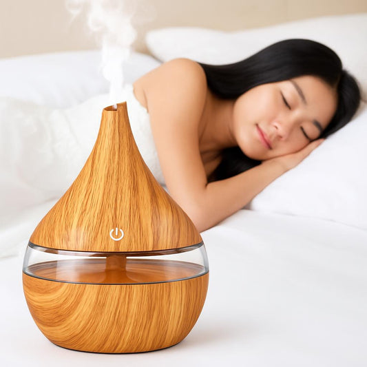 • Ultrasonic Teardrop Essential Oil Diffuser with Wood Grain Finish