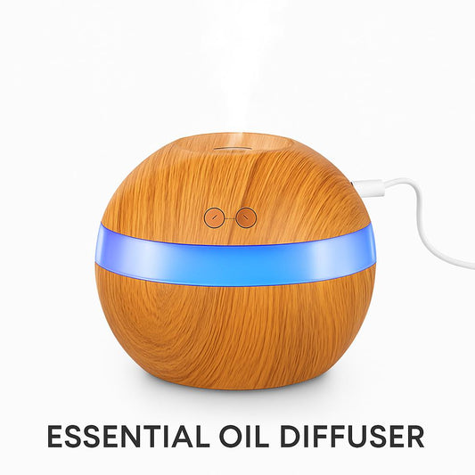Spherical Wood Grain Essential Oil Diffuser with LED Light