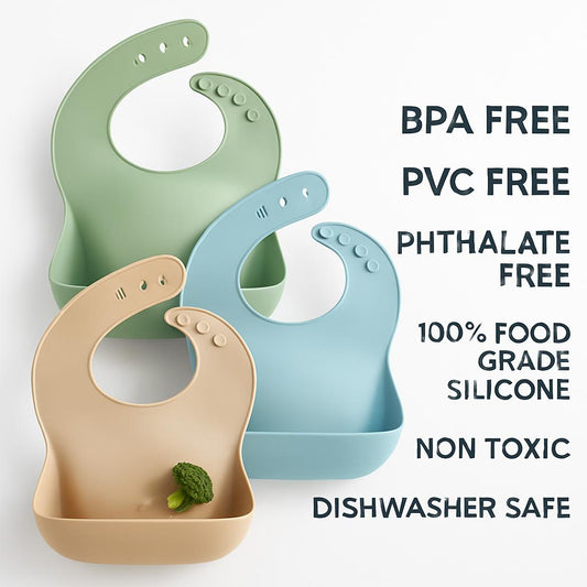 • Eco-Friendly Silicone Baby Bibs with Catch Pocket for Infants and Toddlers