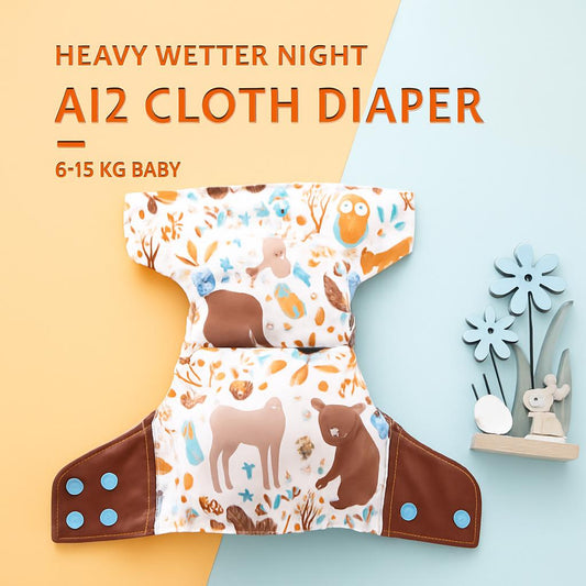 • Eco-Friendly Reusable AI2 Cloth Diaper with Animal Patterns for Babies 6-15 kg