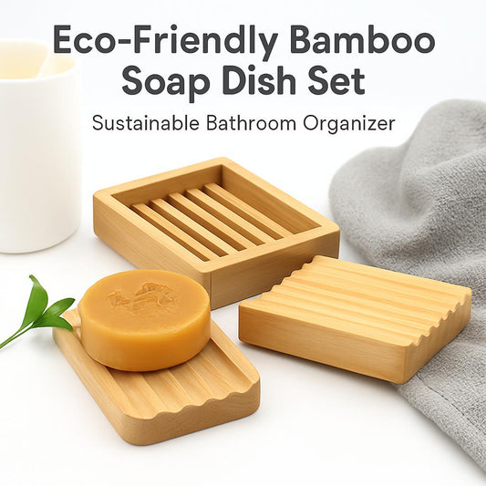• Eco-Friendly Bamboo Soap Dish Set - Sustainable Bathroom Organizer