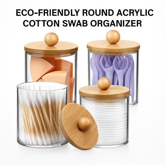 • Eco-Friendly Round Acrylic Cotton Swab Organizer for Bathroom