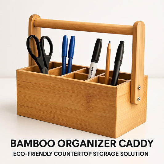 • Bamboo Organizer Caddy - Eco-Friendly Countertop Storage Solution