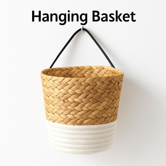 • Natural Beige Hanging Storage Basket - Eco-Friendly Woven Straw Organizer