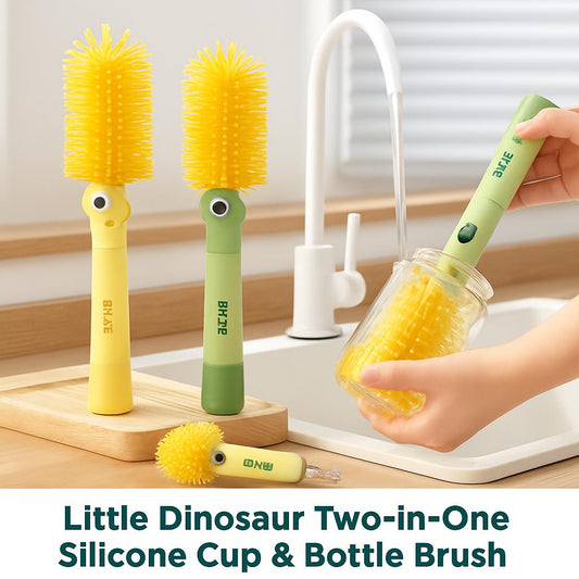 • Little Dinosaur Two-in-One Soft Silicone Cup and Bottle Cleaning Brush