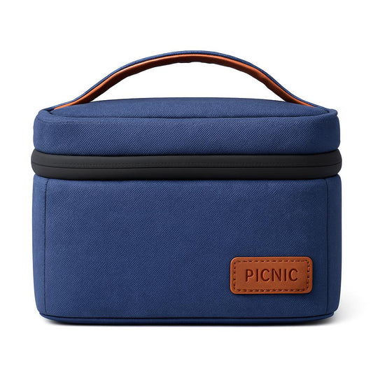 Eco-Friendly Picnic Bag - Blue Canvas with Brown Accents
