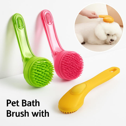 • Eco-Friendly Pet Bath Brush with Long Handle for Dogs and Cats